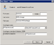 - Luego, asigne a la cuenta un buzón de correo de MS Exchange.