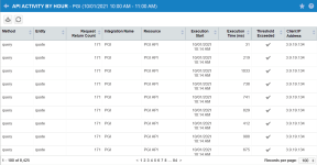 El reporte interactivo Actividad de la API por hora brinda visibilidad sobre las estadísticas de uso de sus integraciones. Esta información le ayuda a crear una imagen completa de su actividad de API, incluida cuál de sus aplicaciones se está acercando o está excediendo umbrales de llamadas, para que así las pueda gestionar de manera eficaz. Para más información sobre umbrales de actividades de la API, consulte nuestros artículos REST y SOAP en la Ayuda al programador de Autotask.