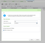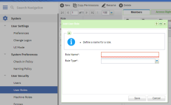- Seleccione la nueva función en la lista de funciones y haga clic en la pestaña Derechos de acceso.
