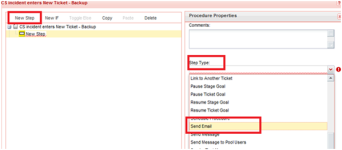 - Haga clic en Nuevo paso en la parte superior de la página y luego seleccione Enviar correo electrónico desde el menú de Tipo de paso.