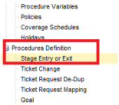 - En el menú del panel izquierdo de Kaseya Service Desk, bajo Definición de procedimientos, haga clic en Entrada o salida de etapa.