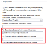 - Bajo Opciones de paso, ingrese la dirección de correo electrónico de su analizador de correos electrónicos, por ejemplo, Kaseya2AT, en el campo Para: